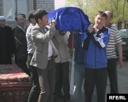 Молда 130 жаста өмірден өткен Сахан Досованың жаназасын шығарды. Майқұдық, 13 мамыр, 2009 жыл.