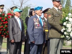 Тұрарбек Жүнісов пен соғыс ардагері Қаматай Тоқабаев кеңес әскерлері зиратына гүл қойды. Прага, 9 мамыр 2010 жыл.