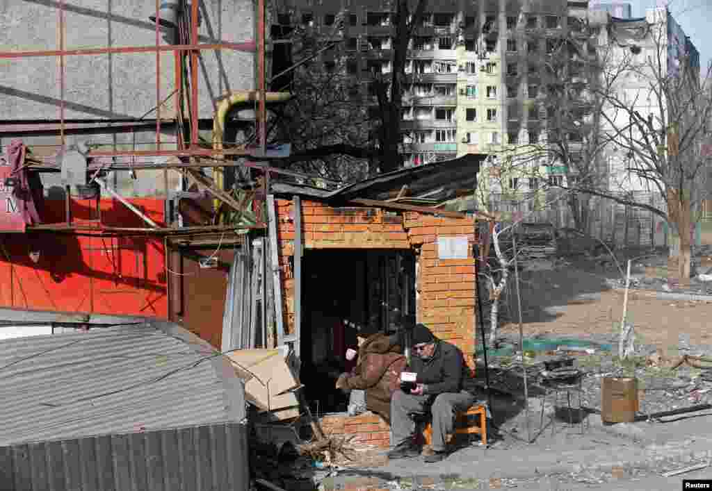 1 сәуірде қаладан шамамен 2 мың адам шығып, Запорожье қаласына аттанғаны хабарланды. Бірақ Мариупольде әлі 150 мыңдай адам бар. Суретте қала тұрғыны Ресей әскериімен сөйлесіп тұр.