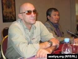 Қазақстан президентінің кеңесшісі Ермұхамет Ертісбаев (сол жақта) пен "Әділ сөз" қорының басшысы Тамара Калеева. Астана, 27 қыркүйек 2010 жыл