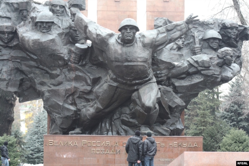 Саяси жетекші Клочковтың әйгілі сөзі – 28 гвардияшы-панфиловшылардың ескерткішінен көрініс. Алматы, 23 ақпан 2010 жыл.