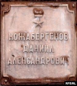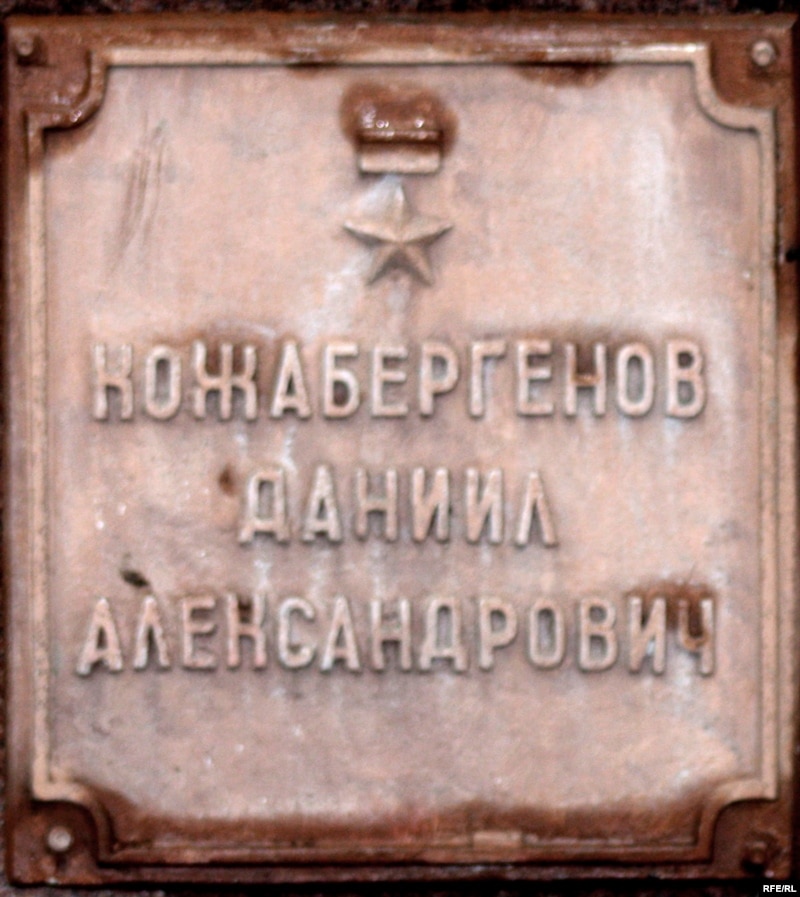 28 гвардияшы-панфиловшылардың бірі Даниил Қожабергеновтың құрметіне қойылған тақтайша. Алматы, 23 ақпан 2010 жыл.
