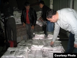 Тәуелсіз "Республика - деловое обозрение" газеті баспада тәркіленіп жатыр. Алматы, 18 қыркүйек 2009 жыл.