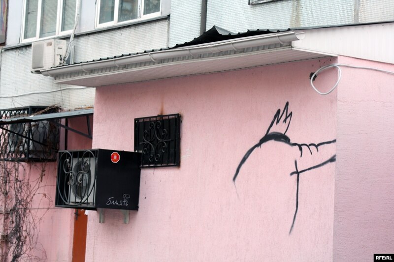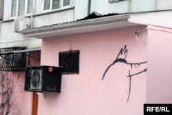Қырғыз журналисті Геннадий Павлюк аяқ-қолы байланған күйде осы үйдің подъезінің күнқағарында табылған. Алматы, 21 желтоқсан 2009 жыл.