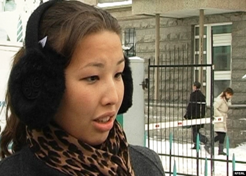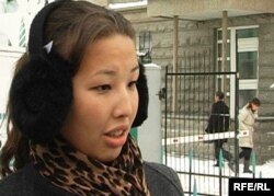 Мұхтар Жәкішевтің қызы Әйгерім Жәкішева Сарыарқа аудандық сотының алдында. Астана, 5 қаңтар 2010 жыл.
