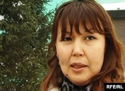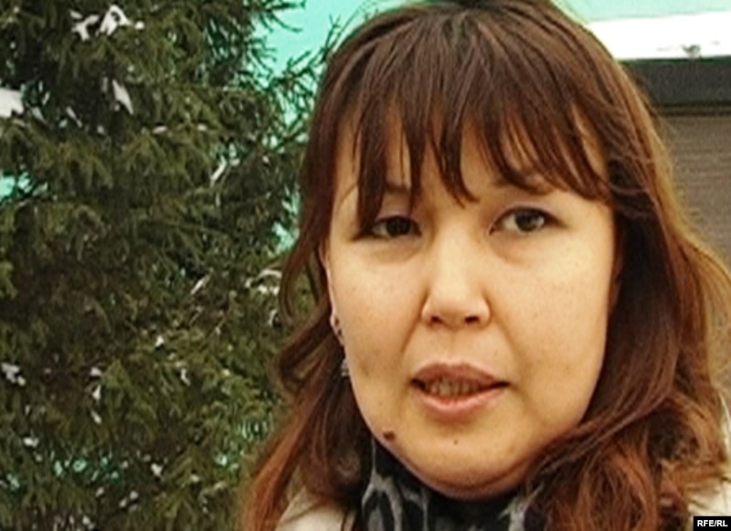 Мұхтар Жәкішевтің зайыбы Жәмила Жәкішева Сарыарқа аудандық сотының алдында. Астана, 5 қаңтар 2010 жыл.