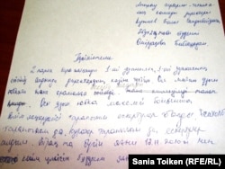 Агротехникалық колледжі директорына студент Бибінұр Өмірзақованың сабаққа хиджаб киіп келгені туралы жазған түсініктемесі. Атырау, 12 қараша 2010 жыл.