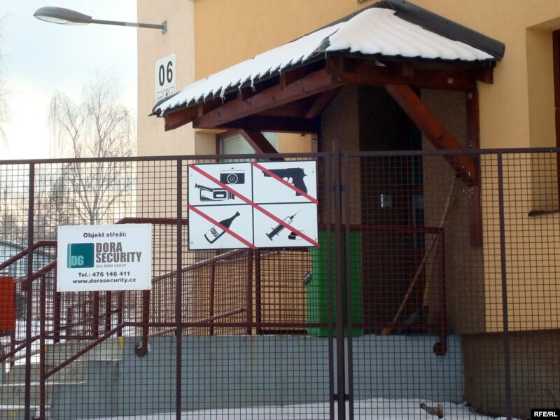 Чехиядағы Вышни Лхоты деревнясында орналасқан босқындар лагері қабылдау орталығының қоршауы. 1 ақпан 2009 ж.