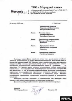 «Балқаш-9» нысанын бөлшектеу туралы «Меркурий Плюс» фирмасының директоры Сергей Походяевтың өтініші.