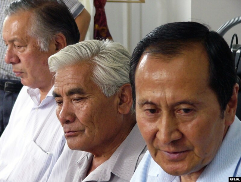 Қазақ ақыны Дәулетбек Байтұрсынұлы (сол жақта), Қазақстан ұйғыр қауымдастығының мүшесі Әбдужәлел Хамрам және «Жұлдыз» журналының бас редакторы ақын Ұлықбек Есдәулет Азаттық радиосының Алматыдағы бюросында Үрімжідегі ұйғырлар наразылығы туралы дөңгелек үстел отырысында. 9 шілде, 2009 жыл.