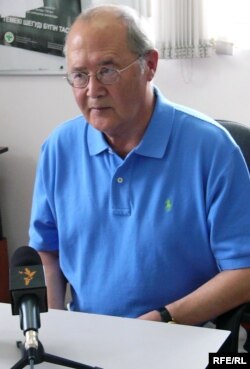 Жазушы, мәдениеттанушы, қытайтанушы ғалым Мұрат Әуезов Азаттықтың Алматыдағы бюросында Үрімжідегі ұйғырлар наразылығы тақырыбына өткізілген дөңгелек үстел отырысында. 9 шілде 2009 жыл.