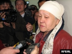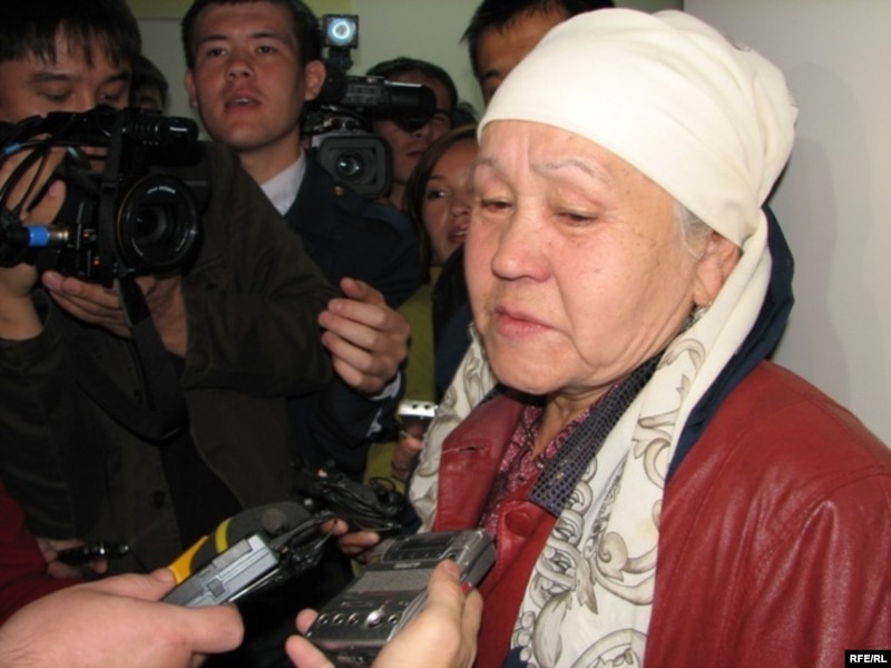 Нұрлан Ысқақовтың анасы Дәметкен сот үкімі шыққаннан кейін журналистерге сұхбат беріп тұр. Астана, 16 қазан 2009 жыл.