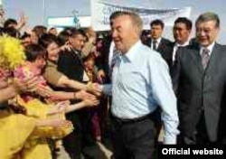 Қазақстан президенті Н. Назарбаев 2005 жылғы президент сайлауы алдында сайлаушылармен кездесуде. Сурет ресми сайттан алынды.