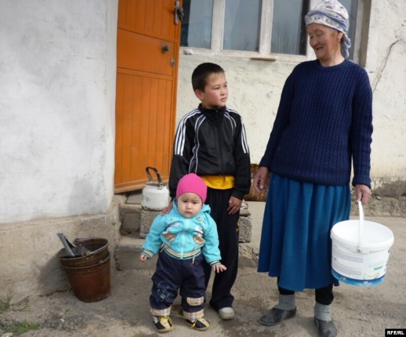 «Шұғыла» шағын ауданының тұрғыны Күлзейнет Түрікбенова немерелерімен бірге. Шымкент, 29 наурыз 2010 жыл.