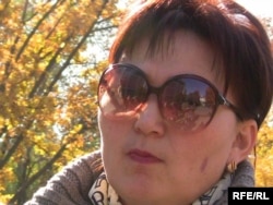 «Азат» партиясы төрағасының орынбасары Маржан Аспандиярова журналист Рамазан Есіргеповтың шағымын қарап жатқан Жамбыл облыстық сотының алдында. Тараз, 22 қазан 2009 жыл.