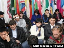 Жасарал Қуанышәлин өткізген баспасөз жиынына журналистер мен видеокамера ұстаған өзге де адамдар қатысты. Алматы, 3 қараша 2010 жыл.