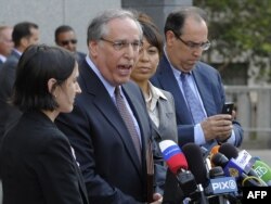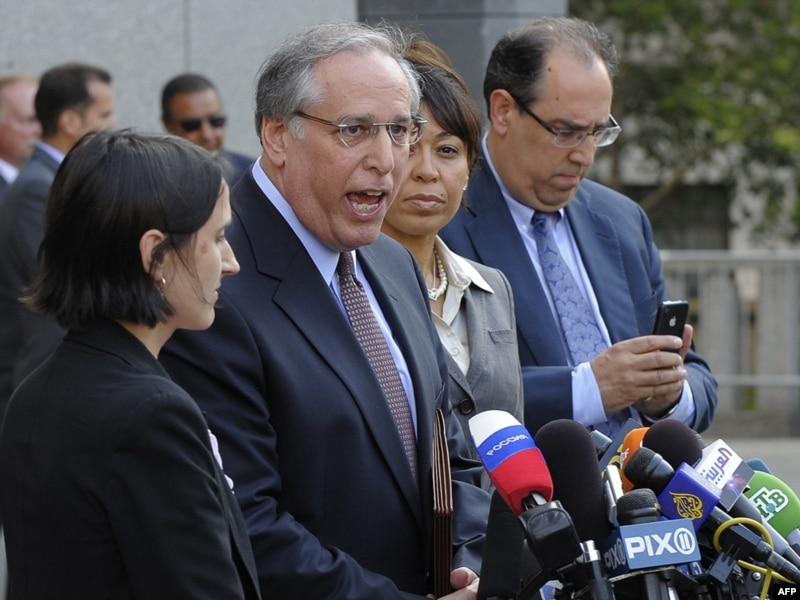 Анна Чэпманның адвокаты Роберт Баум Манхэттен Федералдық сотының алдында баспасөз мәслихатын өткізіп тұр. Нью-Йорк, 8 шілде 2010 жыл.
