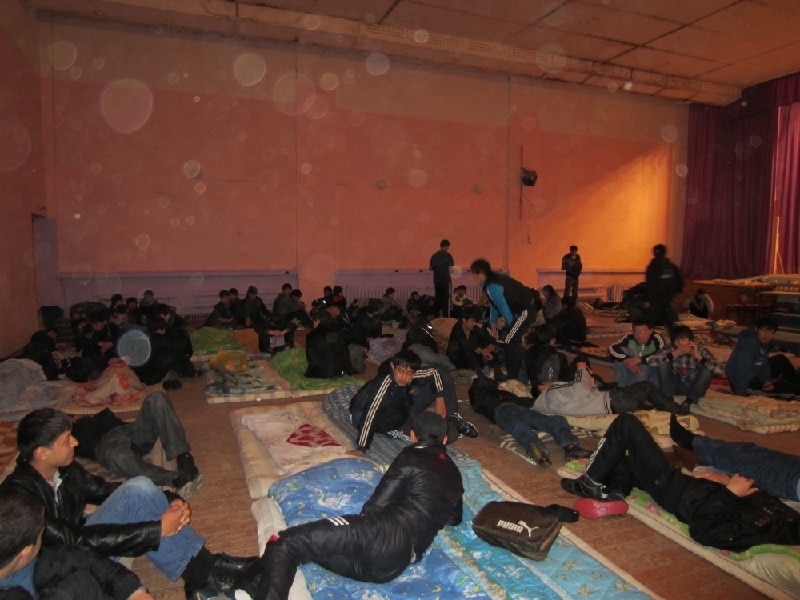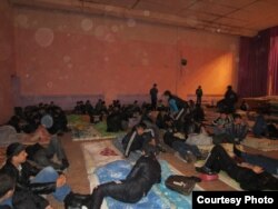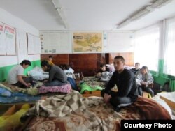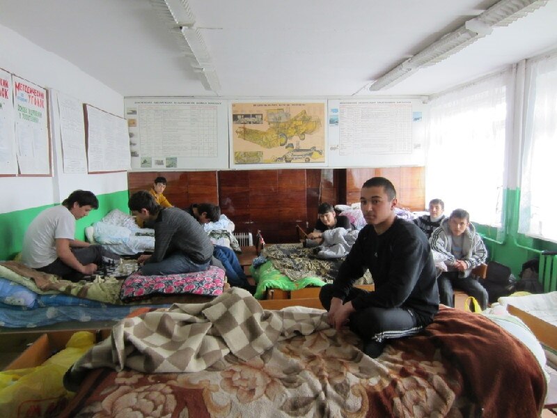 Ресейдің Тверь облысындағы Ржев аграрлық колледжінің спортзалында тұрып жатқан Қырғызстаннан оқуға барған студенттер.