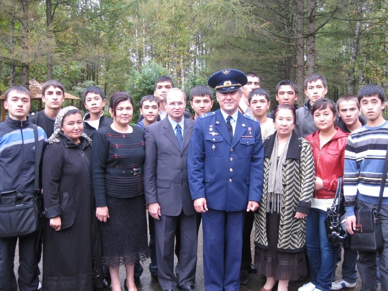 Ғарышкер Салижан Шарипов Ресейдің Тверь облысындағы Ржев аграрлық колледжіндегі қырғызстандық студенттермен бірге.