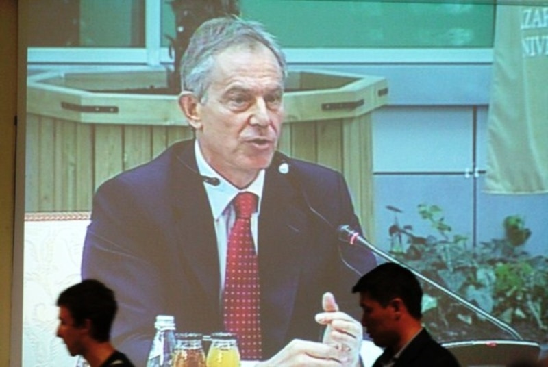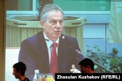 Ұлыбританияның бұрынғы премьер-министрі Тони Блэр инвесторлар кеңесінде сөйлеп тұр. Астана, 18 мамыр 2011 жыл