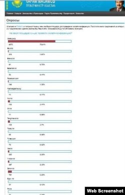 Қазақстан премьер-министрінің веб-сайтындағы сауалнамада Азаттық радиосын қанша адамның қолдағанын оң жақтағы скрин-шоттан анық көруге болады.