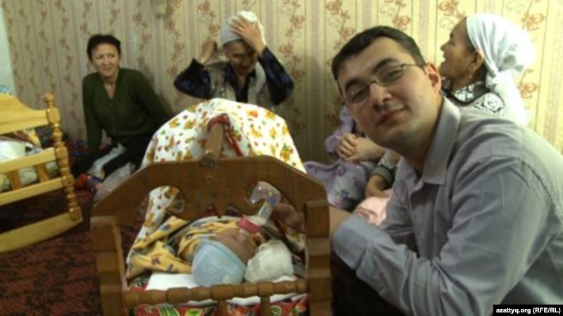 Аманжол Қаберов (оң жақта) егіз баласы қырқынан шыққан күні. Деркөл ауылы, Батыс Қазақстан облысы, 15 ақпан 2011 жыл.