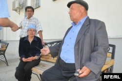Өзін-өзі өртеген Қабидолла Шолақовтың бауырлары мен әйелі облыстық аурухананың ауласында дәрігерлерден жаңалық күтіп отыр. Солдан оңға қарай: Құбайдолла Шолақов, Насихат Шолақова және Халидолла Шолақов. Атырау, 26 мамыр 2009 жыл