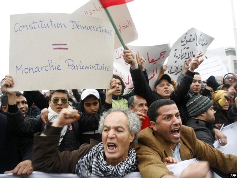 Мароккода жексенбі, ақпанның 20-сы күні өткен ел билігіне қарсы шеруге 3 мыңнан астам адам қатысқан еді. Наразылық танытушылар ел басшысы Мохаммедтен өз өкілетінің біразынан бас тартуын, үкіметті таратуын, коррупцияны жоюын талап еткен. Бүгін Марокконың ішкі істер министрі журналистермен кездесіп, шерушілердің бесеуі көз жұмғанын хабарлады. Министр «тәртіп бұзушылардың» 100-і жараланды, 120 адам тұтқындалды деп мәлімдеді. Ол өртенген бес адамның күлге айналып кеткен сүйектері табылғанын да сол кезде айтты.