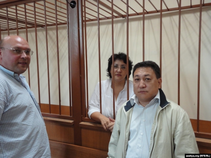 Наталья Соколованың күйеуі Василий Чапурной (сол жақта), Наталья Соколова (ортада) және адвокат Арман Жәменов. Ақтау, 26 қыркүйек 2011 жыл