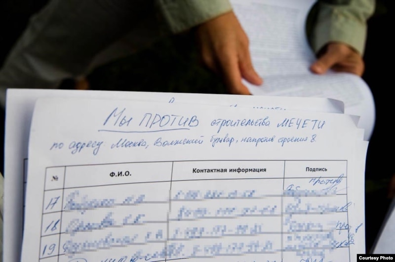11 қыркүйекте қарсылық акциясына шыққан жүздеген адам мешіт салынады деп жоспарланған Волга бульварына жиналды. Бұл жиылыста Мәскеудегі мұсылмандар қауымдастығы өкілдерінің де төбе көрсеткенін «Ютуб» видеопорталынан көруге болады.