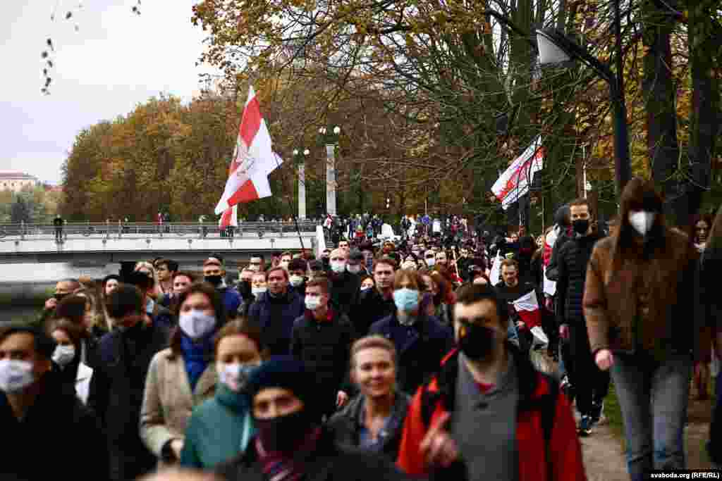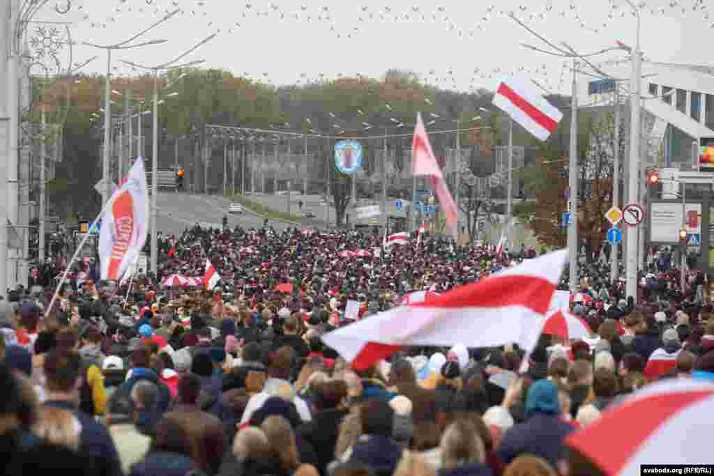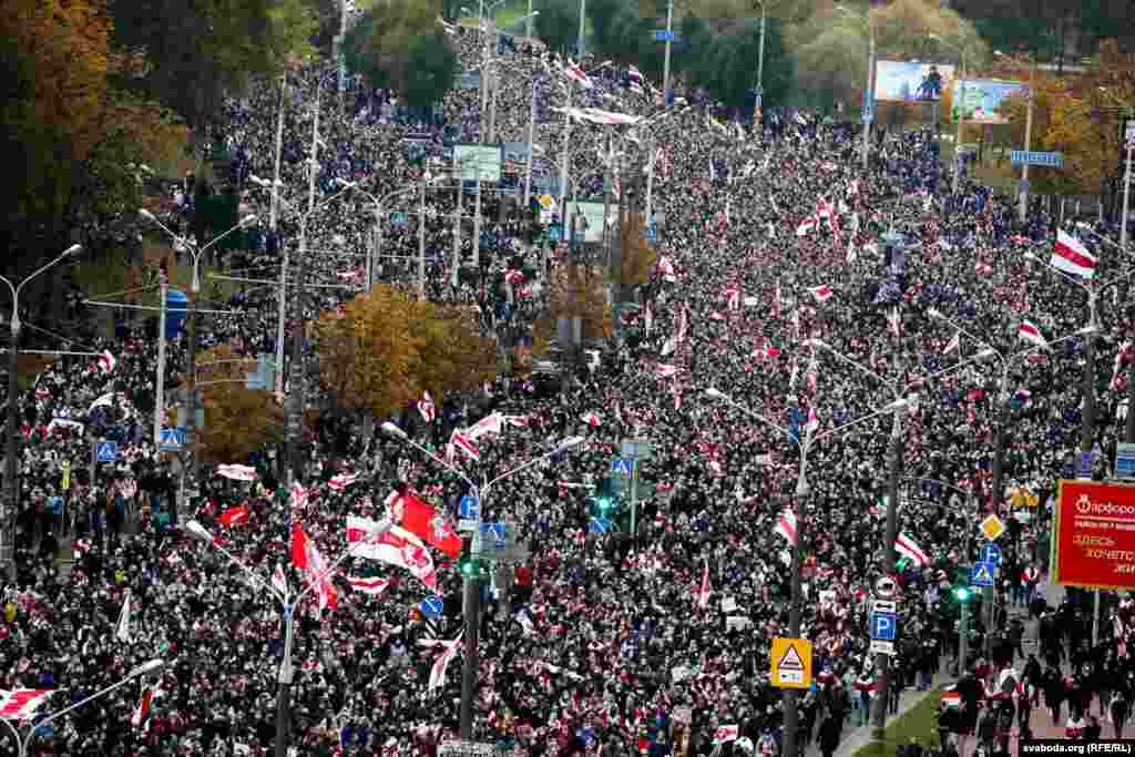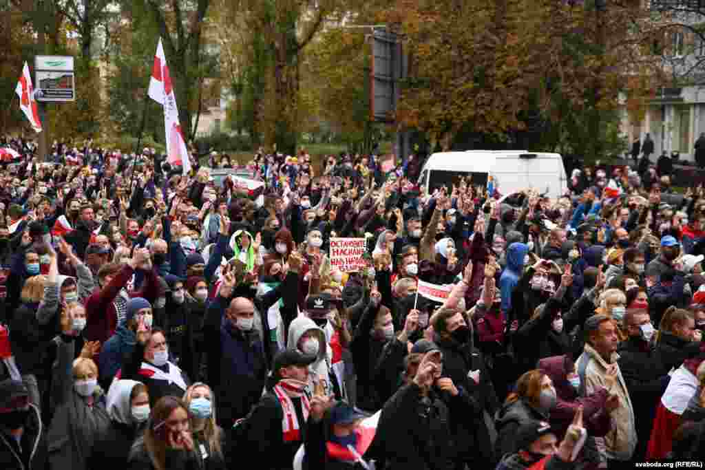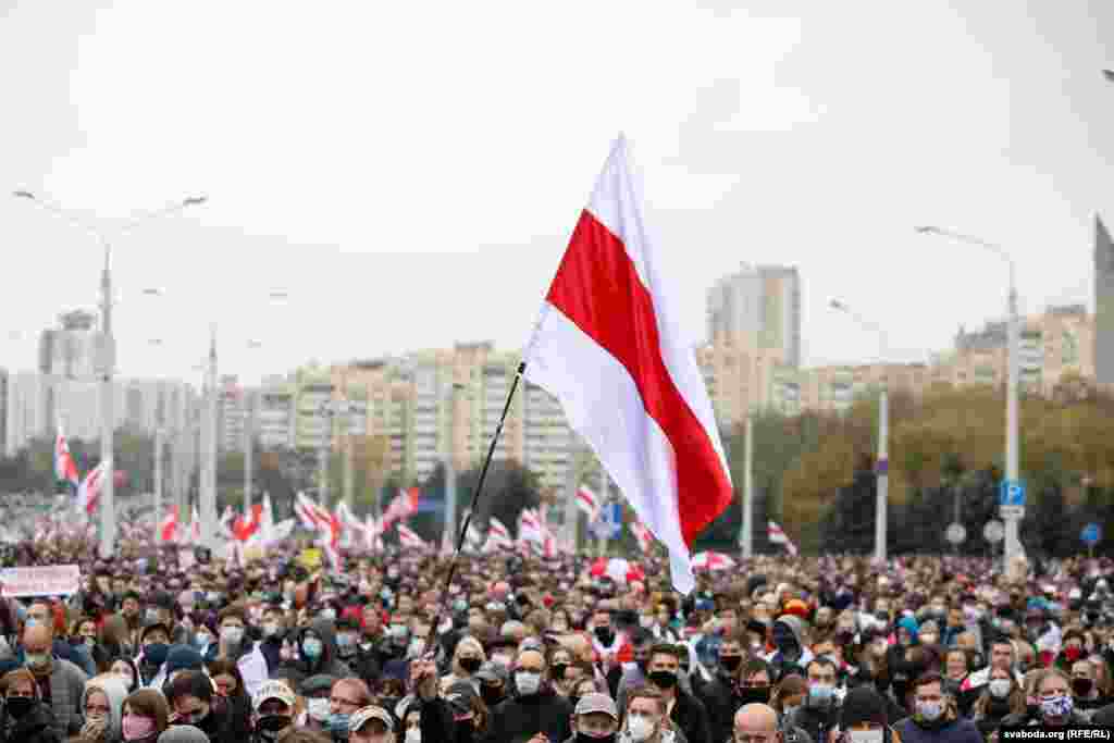 Беларусьте тамыздағы даулы президент сайлауынан кейін басталған наразылық шеруі он бірінші аптаға жалғасты. Азаттықтың Беларусь қызметінің фоторепортажы.