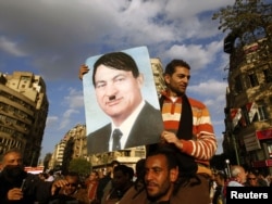 Демонстрант Хосни Мүбәрәктің портретін Гитлерге ұқсатып бояп алған. Каирдегі Тахрир алаңы, 31 қаңтар 2011 жыл