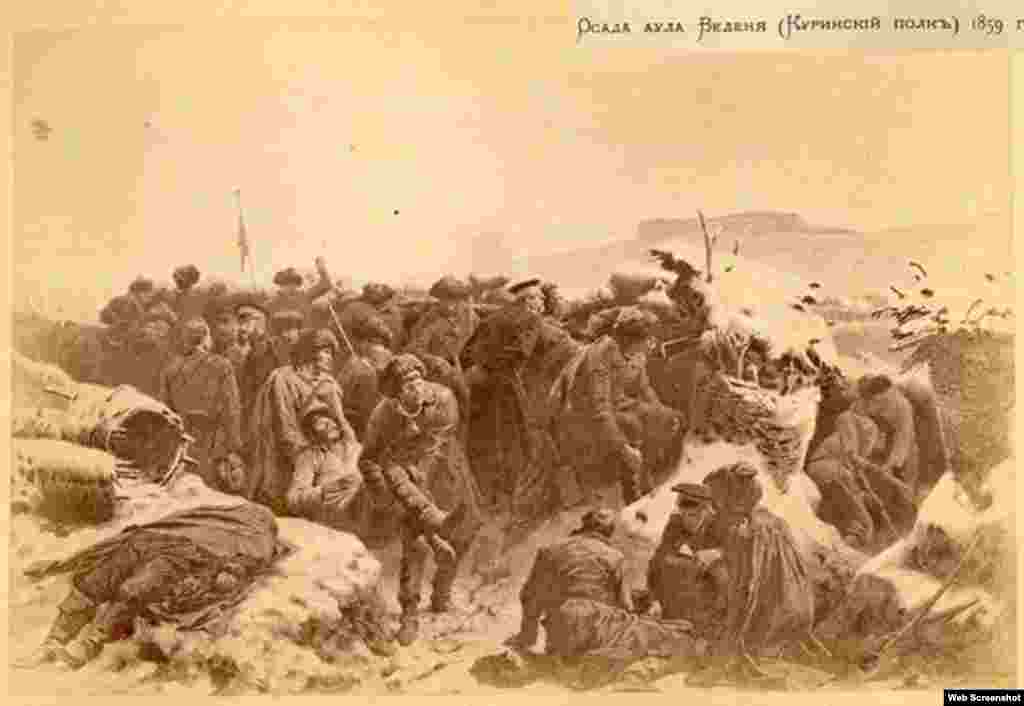 Неміс суретшісі Теодор Горшельт (16 наурыз 1829 - 3 сәуір 1871) 1858 жылы генерал Вревскийдің Дағыстандағы экспедициясы құрамында Кавказға барды. Ол 1859 жылы генерал Евдокимовтің Шешенстандағы жорығына және черкестерге қарсы әскери әрекеттерге қатысып, имам Шәмілдің тұтқындалуына куә болды. Ол Кавказда бес жыл болып, кейін Мюнхенге оралды.